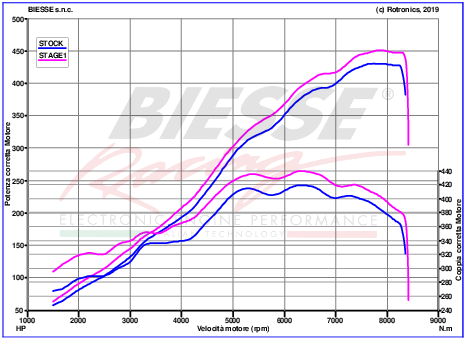 | Note: • All Biesse Racing softwares and files keep unchanged the vehicles’ anti-pollution standards. ¹ Il dati di potenza e coppia dichiarati sono un’indicazione basata sui risultati ottenuti sul nostro banco prova in fase di sviluppo, ovvero con auto in condizioni meccaniche perfette, carburante premium e temperature dell’aria ottimali. I valori possono subire variazioni di +/- 5% sulla potenza complessiva in base alle condizioni di prova sull’auto del cliente (temperatura aria, qualità carburante utilizzato, stato meccanico della vettura). I nostri software vengono prodotti singolarmente sulla base delle richieste del cliente ed anche questo può influire sul valori di incremento effettivi. ² L’opzione test su banco prova comprende una serie di acquisizioni su uno dei nostri banchi a rulli. Le prove vengono effettuate prima e dopo l’intervento di modifica software gestione motore, in modo da poter comparare i risultati ottenuti con i valori originali. I test vengono sempre svolti con almeno 5 lanci sia con auto originale che successivamente alla modifica o fino a quando necessario per determinare correttamente la potenza. Anche un eventuale aggiustamento della calibrazione prevede una nuova sessione di test senza maggiorazioni sul prezzo concordato. Eventuali lanci su banco oltre i 5 previsti non comportano costi aggiuntivi e possono essere eseguiti a discrezione dei tecnici. In caso di installazione di stage avanzati è possibile richiedere che i test vengano svolti anche in fase intermedia per valutare il miglioramento legato ad upgrades meccanici, questa opzione comporta un aumento del preventivo da concordare in fase di prenotazione. | |||||||||||||||
