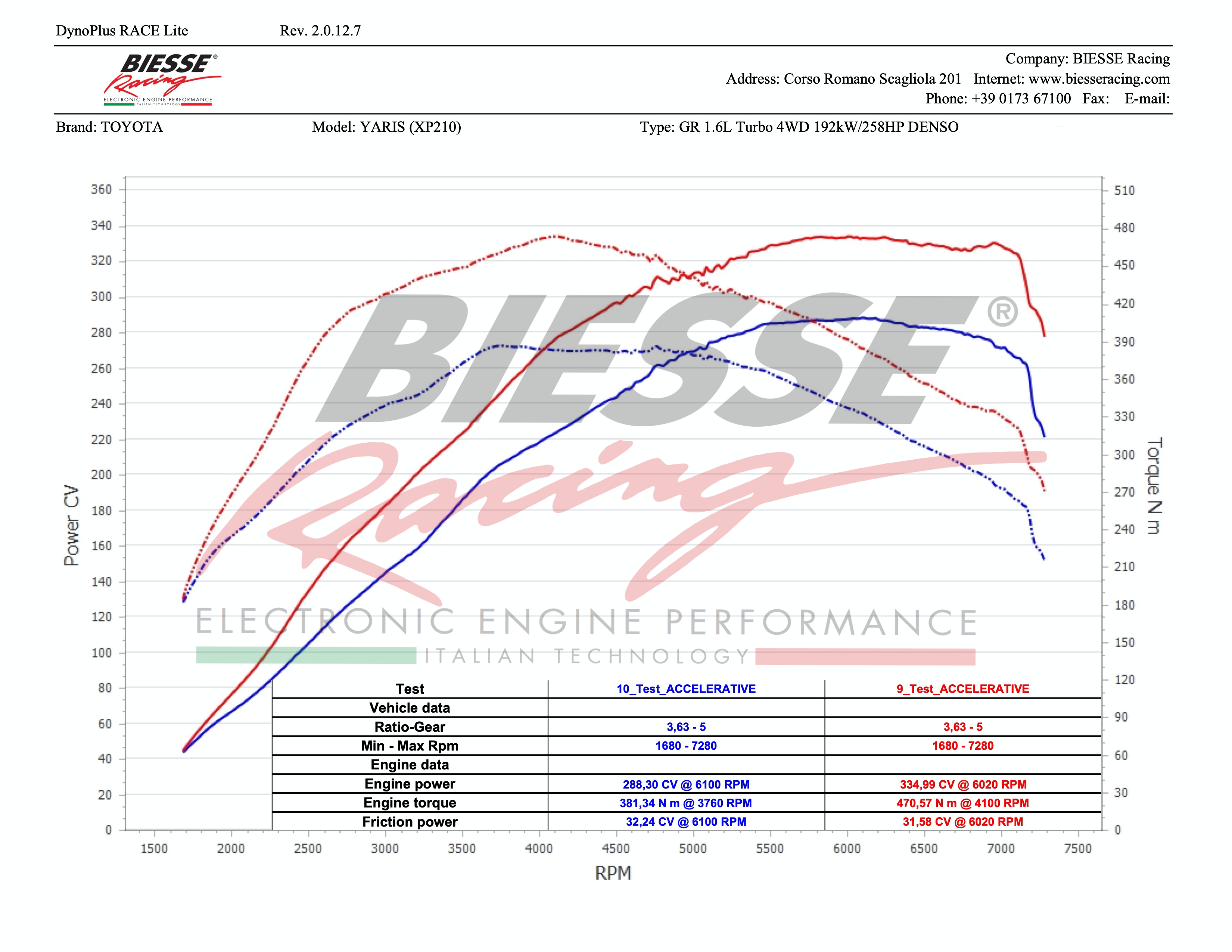 Configurazione del veicolo richiesta: Note:- free flow downpipe and midpipe - 100RON fuel • Tutti i nostri software e file mantengono inalterati gli standard di emissioni antinquinamento dei veicoli. ¹ Il dati di potenza e coppia dichiarati sono un’indicazione basata sui risultati ottenuti sul nostro banco prova in fase di sviluppo, ovvero con auto in condizioni meccaniche perfette, carburante premium e temperature dell’aria ottimali. I valori possono subire variazioni di +/- 5% sulla potenza complessiva in base alle condizioni di prova sull’auto del cliente (temperatura aria, qualità carburante utilizzato, stato meccanico della vettura). I nostri software vengono prodotti singolarmente sulla base delle richieste del cliente ed anche questo può influire sul valori di incremento effettivi. ² L’opzione test su banco prova comprende una serie di acquisizioni su uno dei nostri banchi a rulli. Le prove vengono effettuate prima e dopo l’intervento di modifica software gestione motore, in modo da poter comparare i risultati ottenuti con i valori originali. I test vengono sempre svolti con almeno 5 lanci sia con auto originale che successivamente alla modifica o fino a quando necessario per determinare correttamente la potenza. Anche un eventuale aggiustamento della calibrazione prevede una nuova sessione di test senza maggiorazioni sul prezzo concordato. Eventuali lanci su banco oltre i 5 previsti non comportano costi aggiuntivi e possono essere eseguiti a discrezione dei tecnici. In caso di installazione di stage avanzati è possibile richiedere che i test vengano svolti anche in fase intermedia per valutare il miglioramento legato ad upgrades meccanici, questa opzione comporta un aumento del preventivo da concordare in fase di prenotazione. | |||||||||||||||